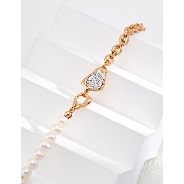 Crafted meticulously, the bracelet features lustrous natural pearls around 6mm paired with brilliant zircon accents and a chain of 925 silver. Its dual textures—the silky smoothness of pearls and the glimmering silver links—harmoniously creates a design that captivates with every glimpse. Hypoallergenic treatment ensures it is as gentle on the skin as dazzling to the eye, making it perfect for everyday wear or special occasions.