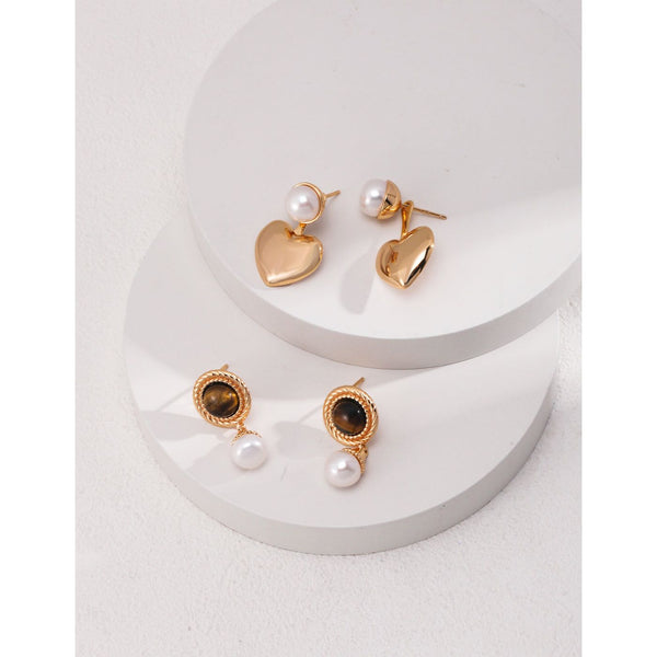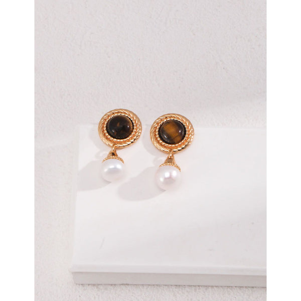 S925 Silver Tiger's Eye Pearl Earrings – Beauty Transcending Through Nature and Craft