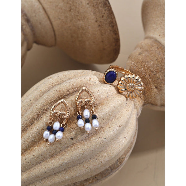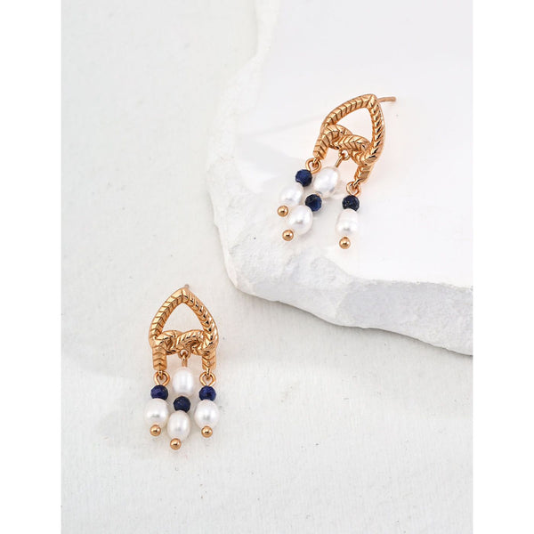 Our earrings promise to redefine your style by adding a touch of sophistication to any ensemble. They seamlessly blend classic pearls and vibrant lapis lazuli, ensuring you stand out with elegance and grace.