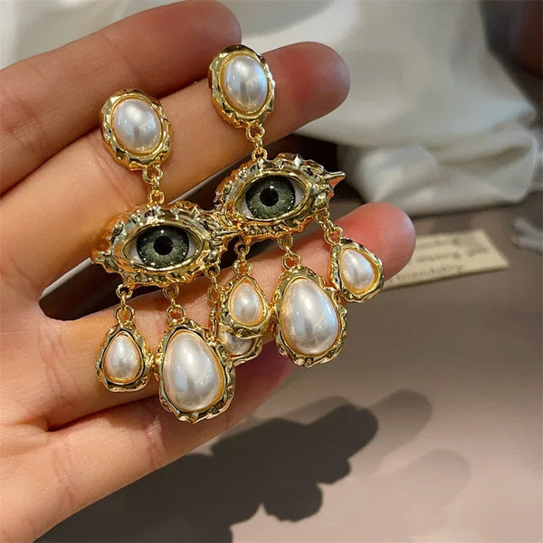Exaggerated big eyes long earrings — the French Style, a piece of art and bedside elegance
