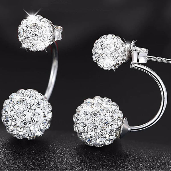 Crafted with precision, each earring features a dazzling cubic zirconia stone captured light with graceful movements. Their versatile double-sided design effortlessly combines modern allure and classic luxury, making the perfect accessory for everyday or formal wear. With hypoallergenic finish, these earrings feel comfortable as they look stunning—ensuring all-day wearability.
