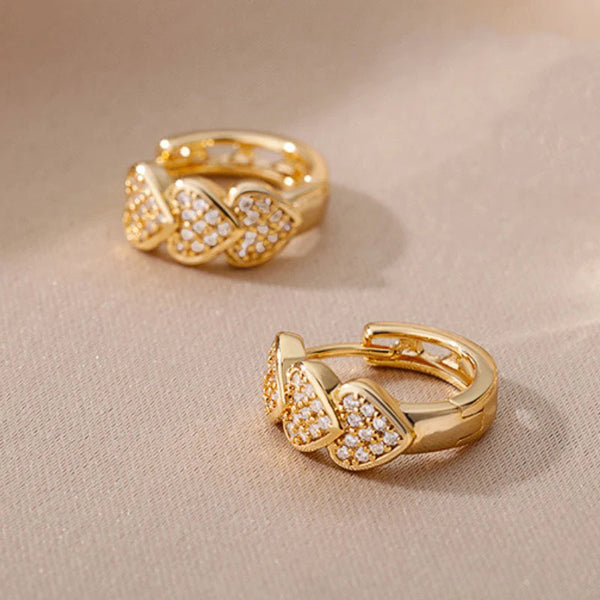 Made of high-quality brass and sparkly cubic zirconia stones, these earrings shine brighter than the stars. This three heart design features softly cascading stones that add sparkle as the heart traverses the path of love, growth & connection. The design exudes artisan charm, every curve, and detail tells its own story, and the hypoallergenic treatment is performed in such a way as to also sparkle such a lustrous shine that enables pure comfort for the most tender and sensitive skin.